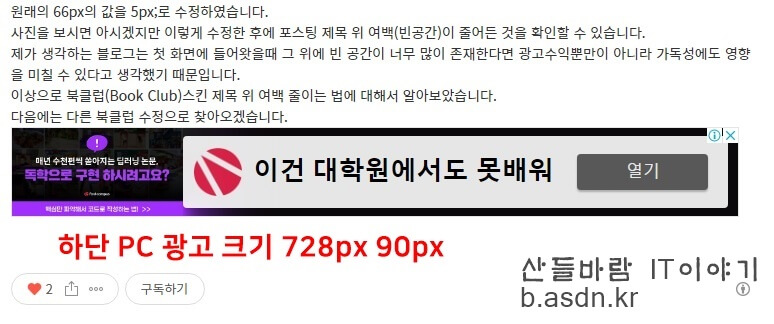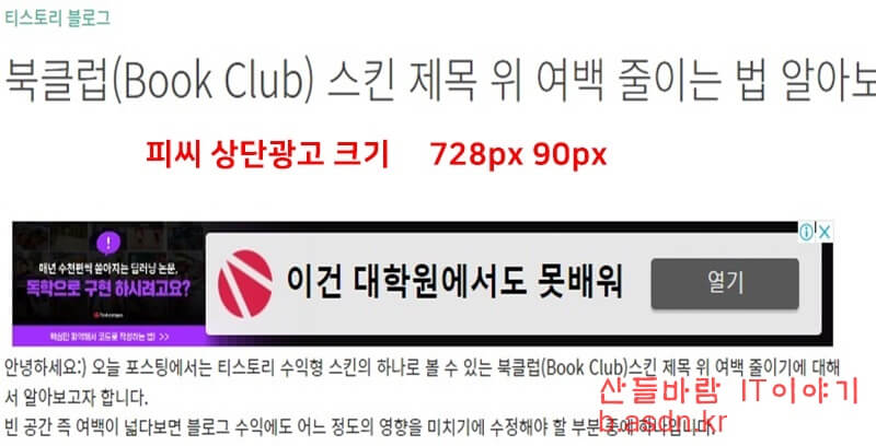 그리고 이 부분을 상단광고에서 적용시켰기에 하단 광고와 본문 광고에서 적용하실려면 원래 광고코드의 style="display:black;"이 부분과 data-ad-format="auto" 이 부분을 삭제하셔야만 적용이 제대로 됩니다.