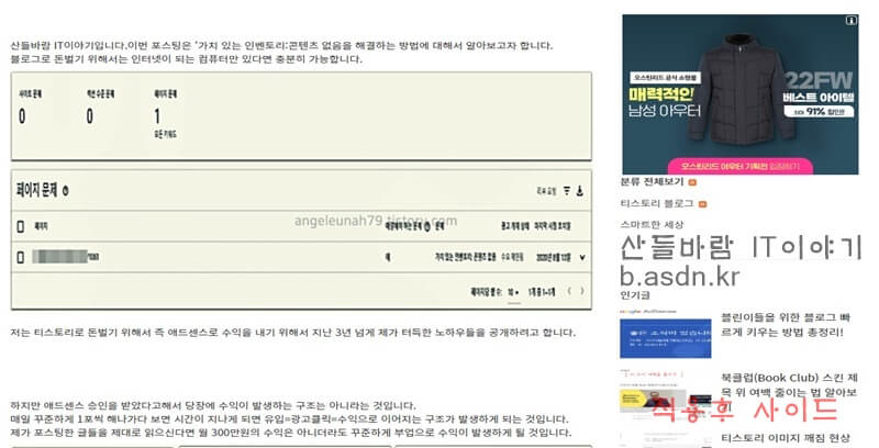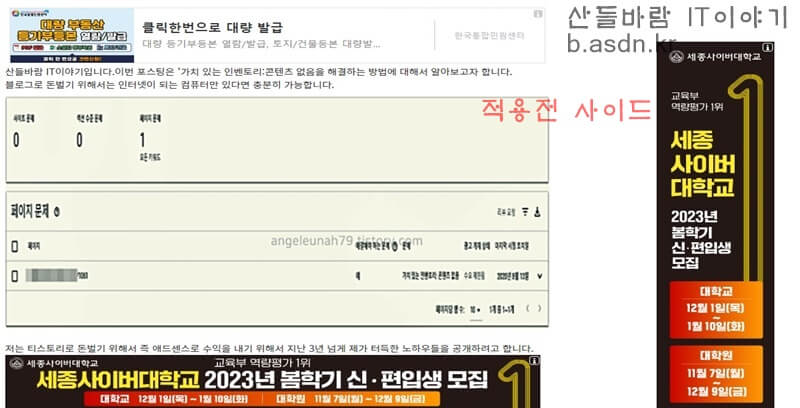 티스토리 북클럽 스킨의 경우에 사이드바 default 값이 상당히 작아 적용할 수 있는 광고의 종류가 제한적일뿐 아니라 효과도 상당히 낮은 편인데요.