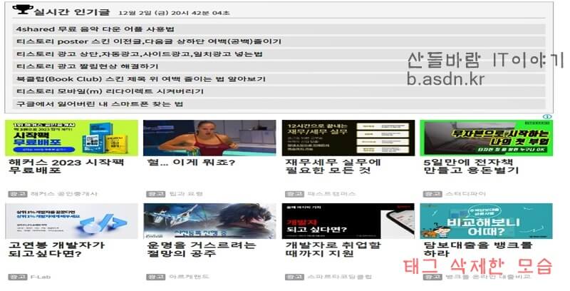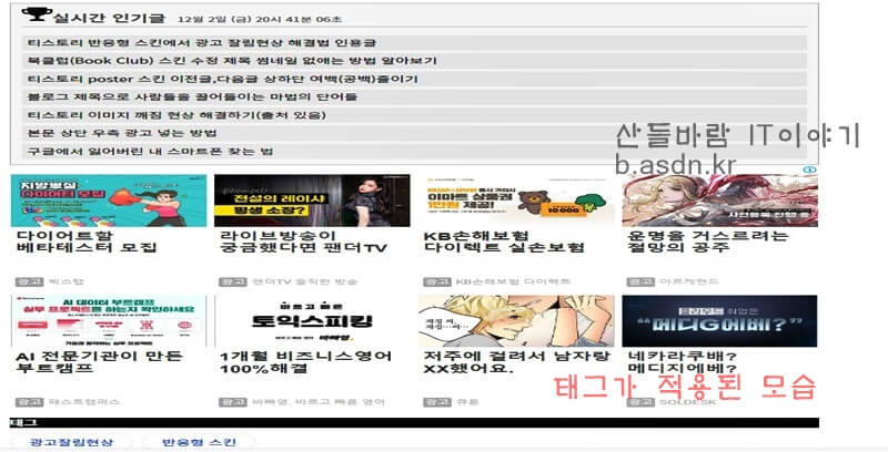 이렇게 한후 적용을하고서 새로고침을 한 후 확인을 하게 되면 기존에 글마다 넣어두었던 태그들을 일괄 보이지 않는것을 확인할 수 있습니다.