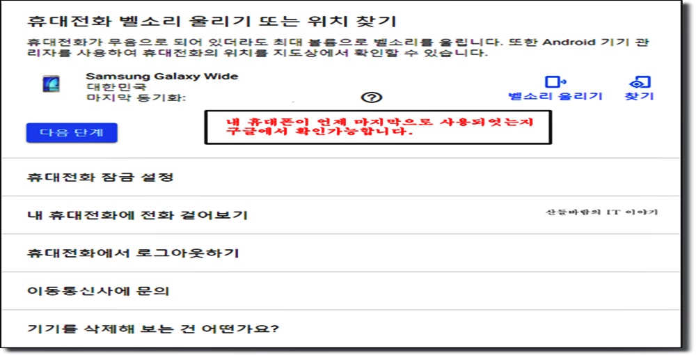 그러나 한 가지 아쉬운것은 폴더폰이거나, 애플폰에서는 내 휴대폰 기기 찾기 서비스가 제공이 되지 않는다는 것이 안타까울뿐입니다.