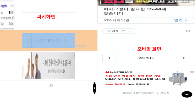 이부분을 수정하고 나니 피시상에서나 모바일상에서 스크롤을 다 내렸을때 마지막 공백 또는 여백이 사라졌는것과 하단광고가 보이는 것을 확인할 수 있었습니다.