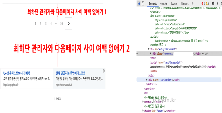위의 사진을 보시면 아시겠지만 다음 페이지와 이전 페이지를 가리키는 부분에서 마지막 하단부분의 여백이 너무 많은것을 볼 수가 있습니다.